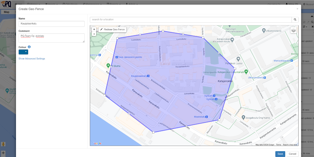 Geofenceillä voidaan tilapäisesti esimerkiksi tarkentaa GPS:sää (vaikka parkkipaikan tarkkuuteen) tai muuttaa päivitysnopeutta, geofenceistä voidaan hälyttää (saapumisesta / lähtemisestä kalustoinventaariossa tai konevuokrauksessa), paikanninlaitteen digitaalilähtö voi kytkeytä päälle geofencen sisällä, kone voi olla immobilisoituna tietyn alueen sisällä tiettyinä kellonaikoina. Myös tuntilaskuri voi haluttaessa toimia vain geofencen sisällä. Geofencet toimivat tietysti myös varashälyttiminä. Lista on pitkä, kannattaa kysyä meiltä lisää.